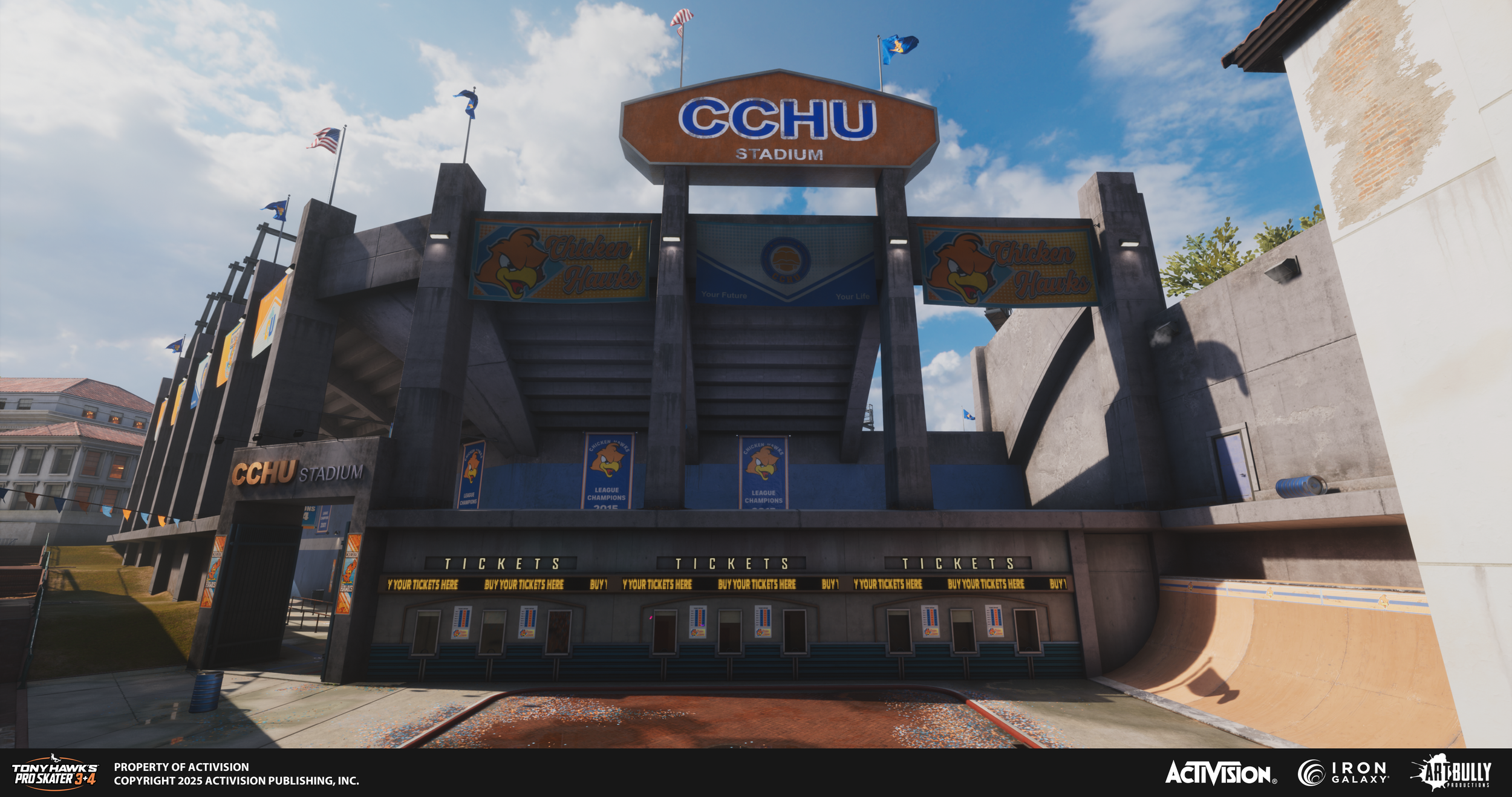 The Art Bully Productions team had the pleasure of contributing to Tony Hawk's Pro Skater 3 + 4. A huge thank you to the Iron Galaxy Studios team for the opportunity and for trusting us with such an iconic project. We're also incredibly proud of our talented artists and staff for their creativity, hard work, and dedication throughout the project.